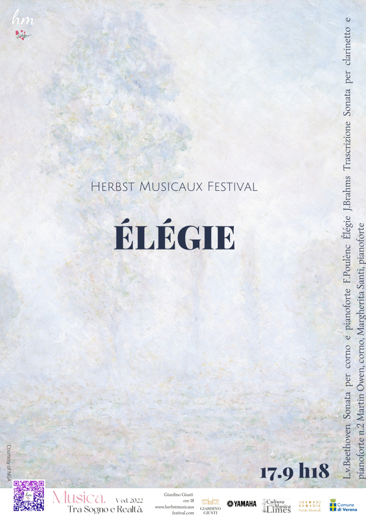 Il tema dell’Elegia è antichissimo: dalla letteratura greca ad oggi, migliaia di componimenti lirici e musicali portano questo titolo. Il contenuto dell’Elegia è elevato, nobile, portatore di valori e sentimenti. Centrale è il tema della mancanza, di un affetto perduto, di un amore lontano. Élégie è il brano centrale di questo concerto. Scritto da Francis Poulénc nel 1958, come tributo per la morte dell’amico cornista inglese Dannis Brain, scomparso a soli 36 anni in un incidente d’auto. Il pezzo vedrà il suo debutto nel gennaio 1958 con il compositore al pianoforte e al corno un collega di Brain, Neill Sanders.